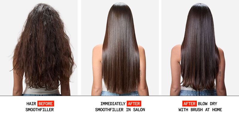 Immediately after the service, the hair will look very straight. The true result is best seen after the first wash, when you can better see the smoother texture, frizz control, manageability and easier blow-dry result.